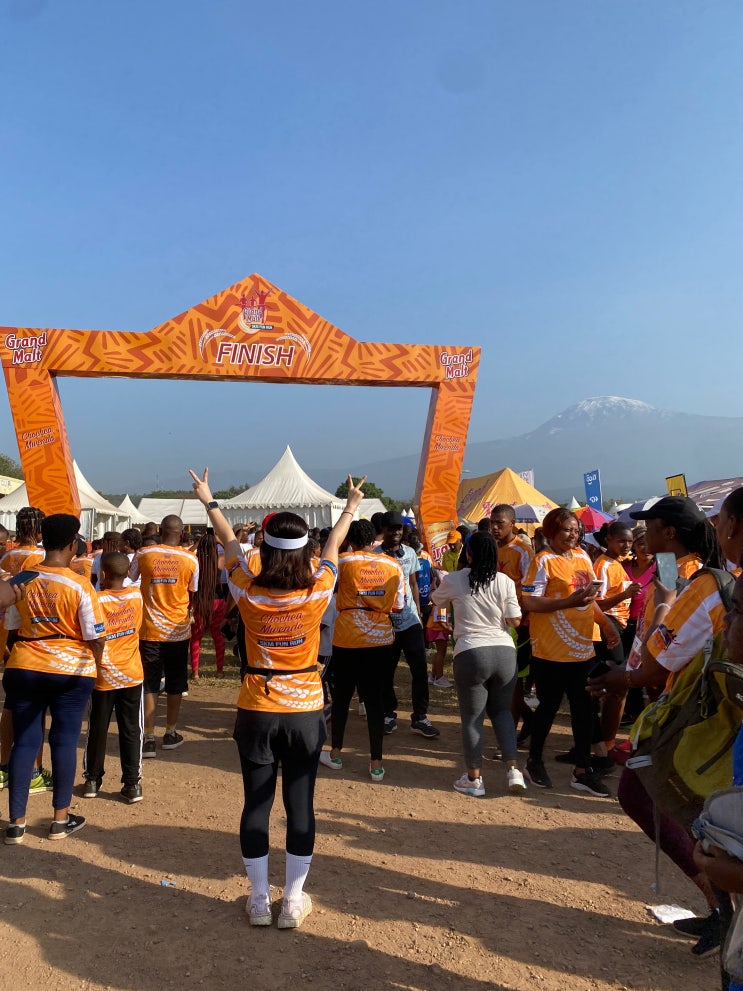 탄자니아 신혼여행 07. 킬리만자로 마라톤 - 반환점을 지나 피니쉬 라인 앞으로. 꼬치에 맥주 마시며 즐기는 마라톤 축제.