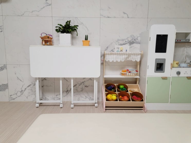 아이들의 놀이터인 거실 평소 아이들이 잠들면 거실에서 나는 책을 읽거나 노트북을 하는 시간이 긴데 식탁...