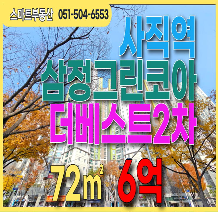 사직삼정그린코아더베스트2차 72㎡(29.65평) 사직역 역세권아파트/사직아시아드라인/사직동 신규아파트/6억 매매소개합니다.