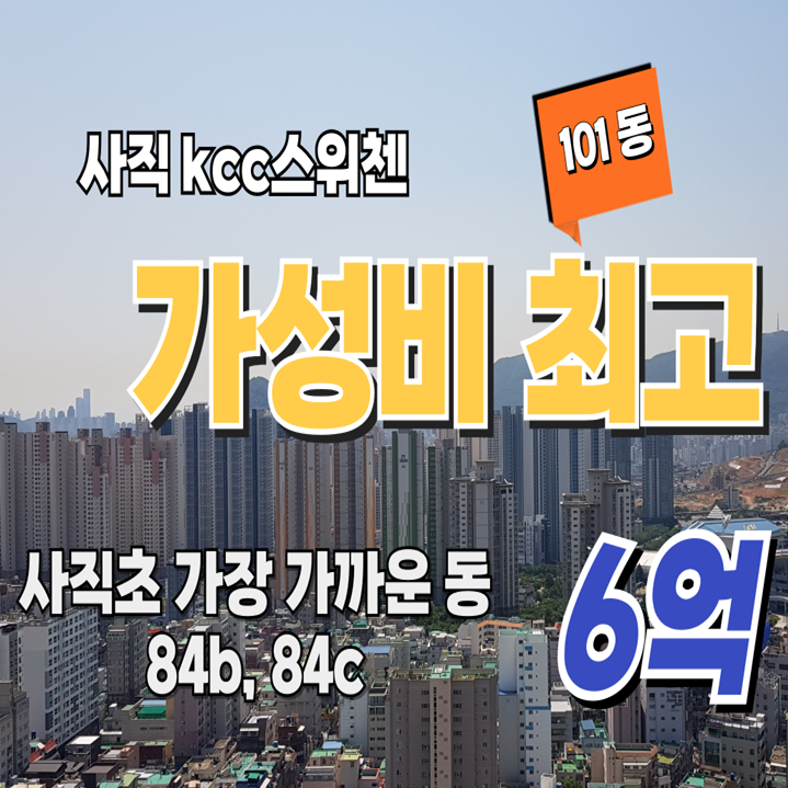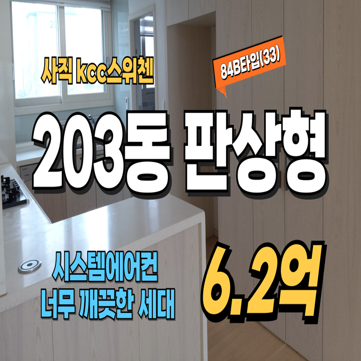 사직KCC스위첸 관심있으신 분들이 절대 놓쳐서는 안되는 매물. 2단지 84B타입 203동 6억2천만매물 소개합니다.