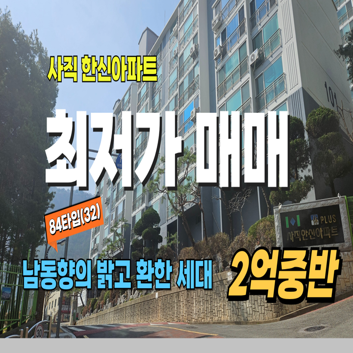 안녕하세요 사직동의 좋은 매물 소개하는 스마트부동산입니다. 사직동 한신아파트 2억대 중반으로 국민평형...