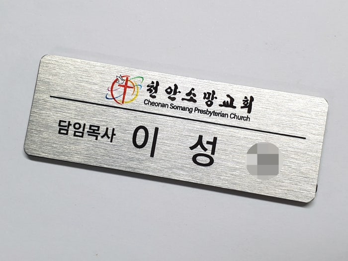 교회명찰 담임목사 명찰 실버 알루미늄으로 제작한 교회명찰입니다^^ 교회명찰의 앞면은 골드 / 실버 - 2가...