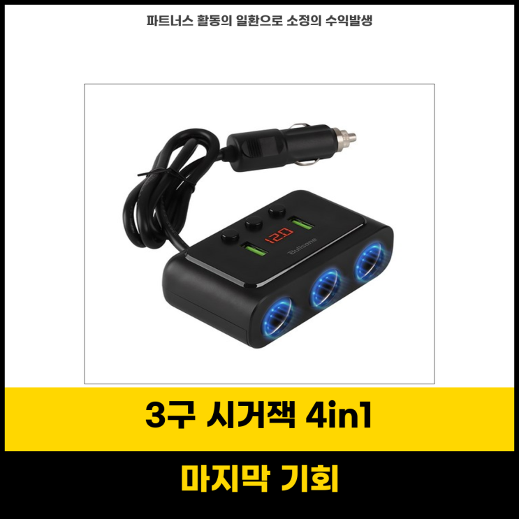 주부특템 만점짜리 매립형 3구 시거잭 4in1 케이블 멀티소켓 차량용 고속 충전기 120W 오늘 소개할 제품은...