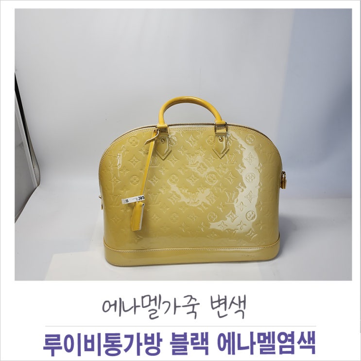 루이비통 에나멜가방 끈적임과 누렇게 변색됨.부산 명품가방염색 에나멜 블랙변경~