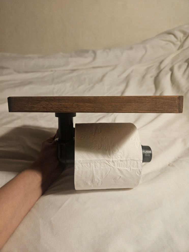 화장실에서 물티슈를 둘 공간이 없어 불편함을 느끼던 중, 파이프팩토리의 원목 선반형 휴지걸이를 알게 됐...