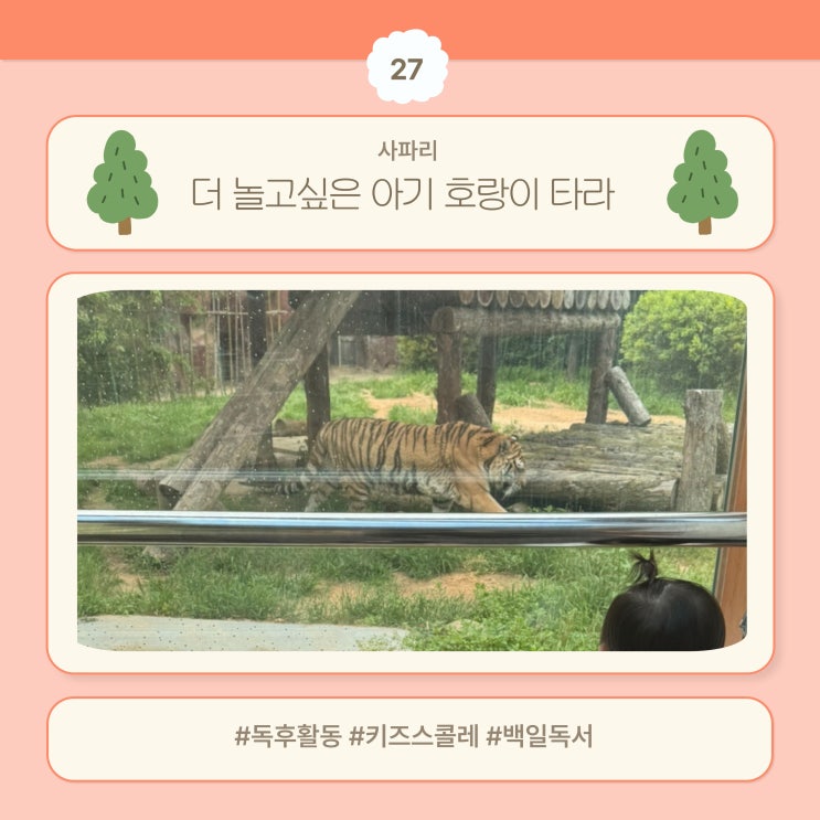 27번째 독후활동 책으로 고른 책은, 사파리의 <더 놀고싶은 아기 호랑이 타라> 라는 책이다. 숲속에 ...