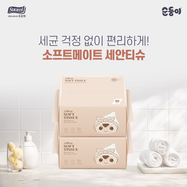 세균 걱정 없이 편리하게! 순둥이 소프트메이트 세안티슈