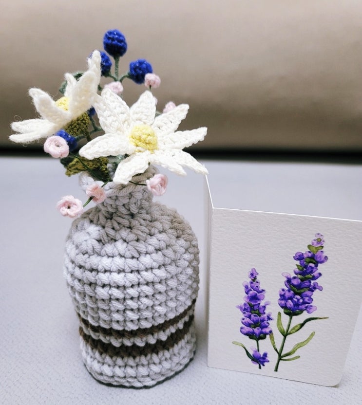 손뜨개 화병 : 가을, 라벤더