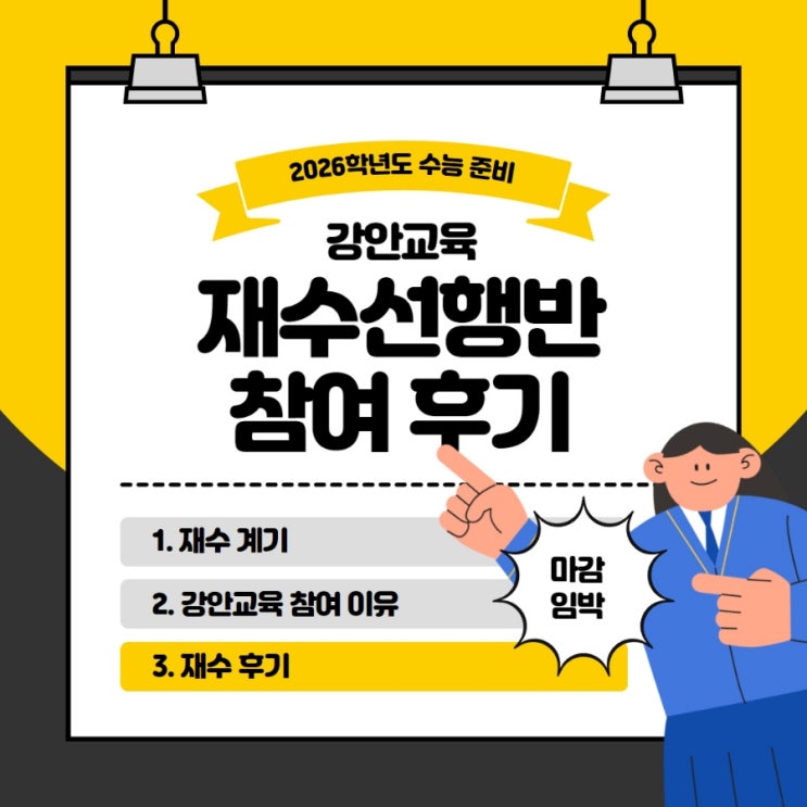 재수선행반 2026학년도 모집 마감 임박 수능을 다시 준비한다는 건 생각보다 더 어려운 일이었어요. 그저 ...