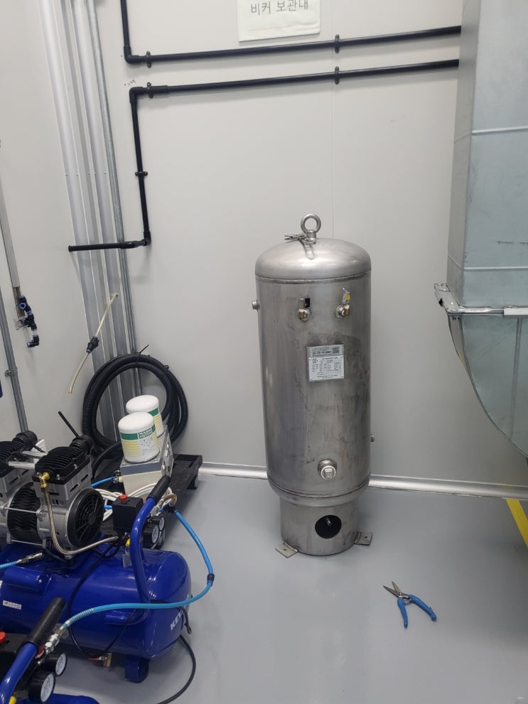 아파트형공장 지식산업센터 연구소 콤프레샤 리시버탱크 에어탱크 검사품 탱크 써스(sus)타입 100리터 0.1루베 실제 설치