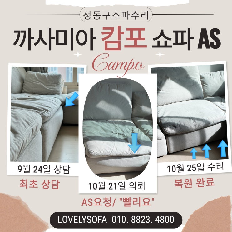 [까사미아 캄포 쇼파 꺼짐 복원] 성동구 소파 AS 수리 현장 소개