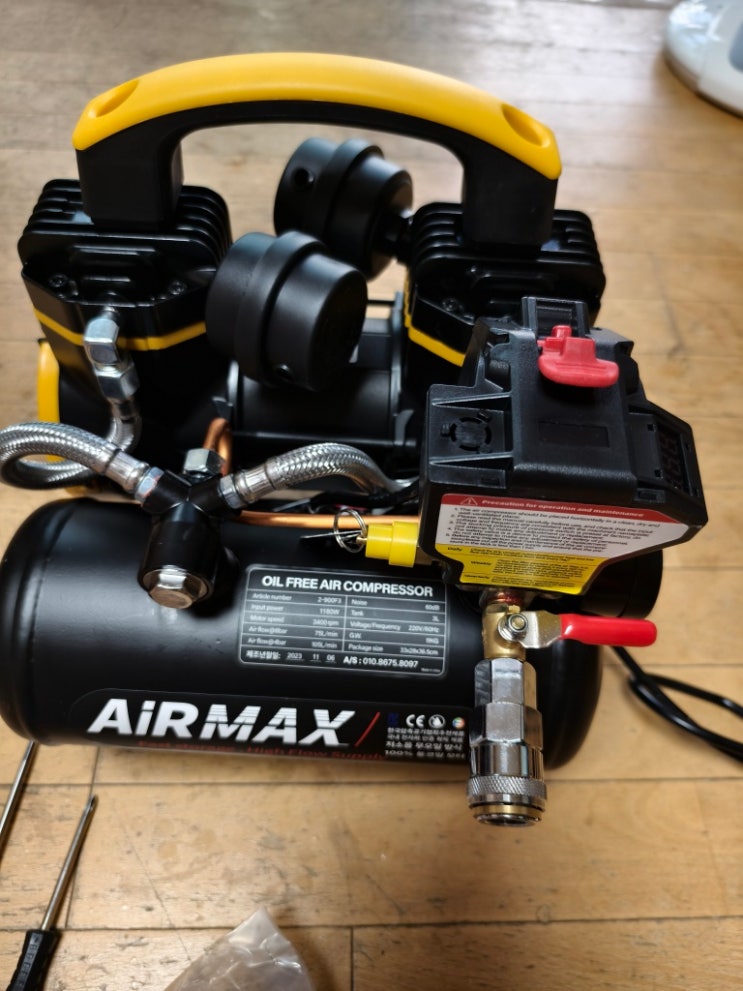 경기도 파주시 에어맥스 가정용 휴대용 5.5마력급 40리터 저소음 무오일 콤프레샤 가성비 좋아요!!