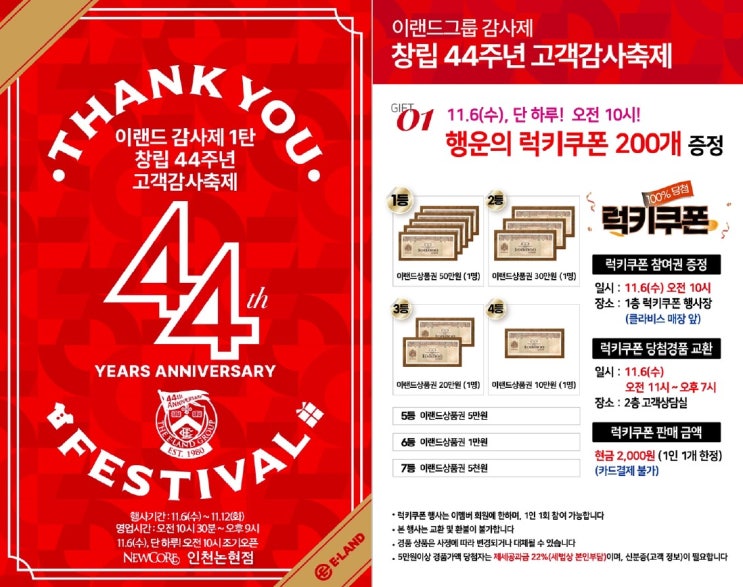 ? 이랜드 감사제 2탄! 창립 44주년 고객감사축제 ? ❤ 뉴코아 인천논현점 DM 행사 ❤ ? 할인과 ...