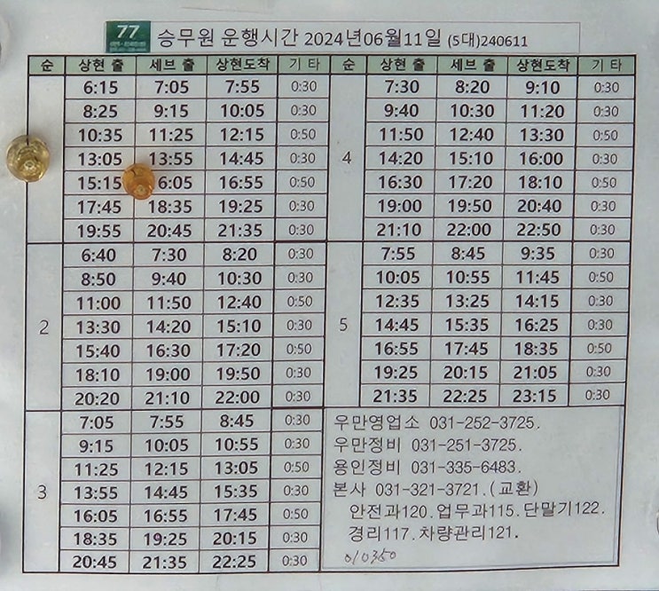 용인 77번 버스 시간표 (24년 12월 14일 기준)