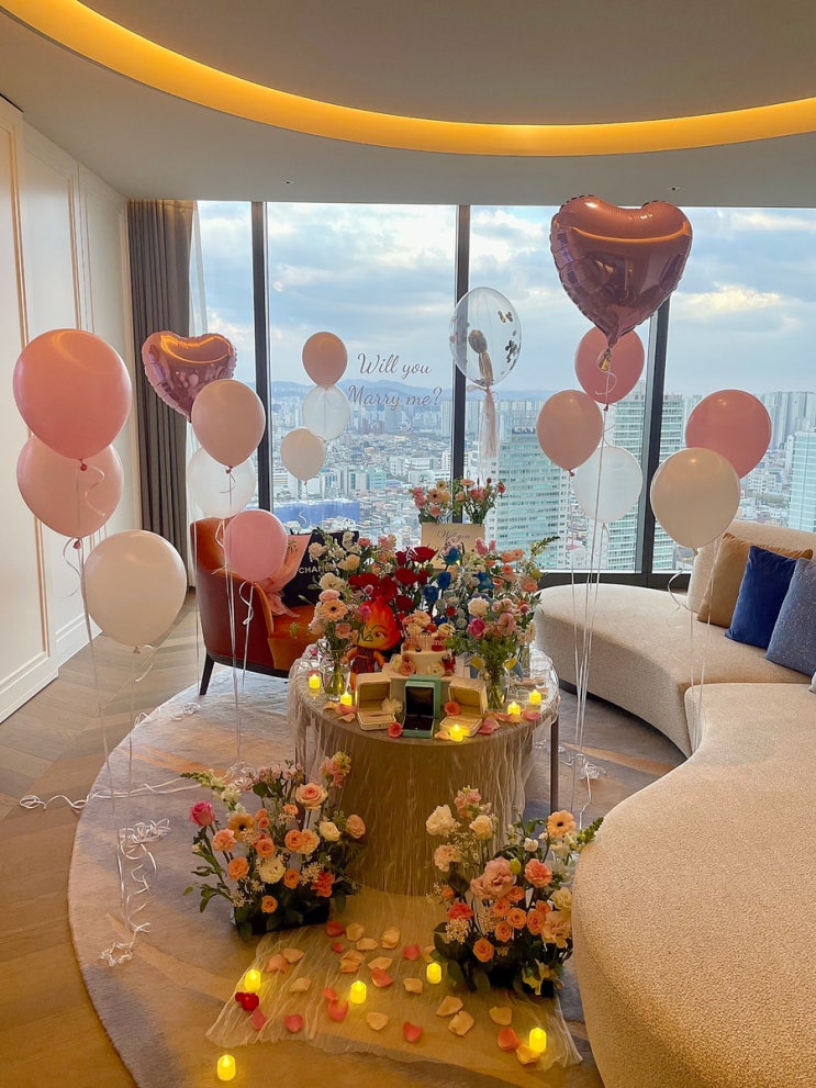 소피텔 호텔 프로포즈, 꽃장식 이벤트 출장 세팅! 석촌호수 벚꽃뷰❤️