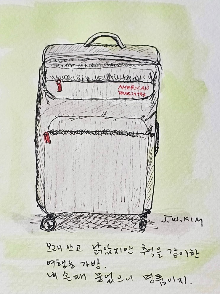 매형이 쓰던건데 물려받아가지고 잘 사용하는 아메리칸 투어리스트 캐리어. 세월의 흔적에 따라 어쩔 수 없...