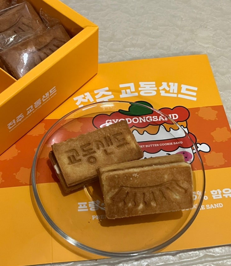 얼마 전 혼자 전주 당일치기 다녀왔는데 손이 모자라 못사오고 말았던 〰️ 교동샌드 〰️ 택배로 받아서 ...