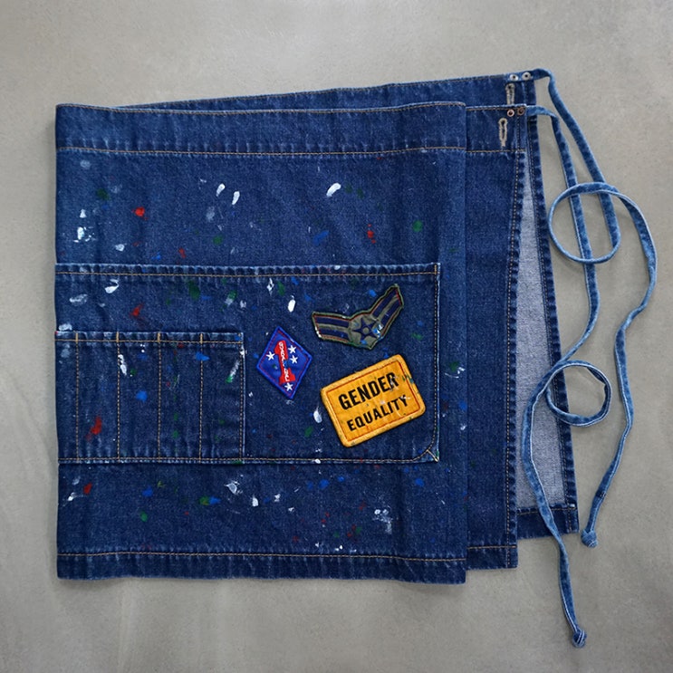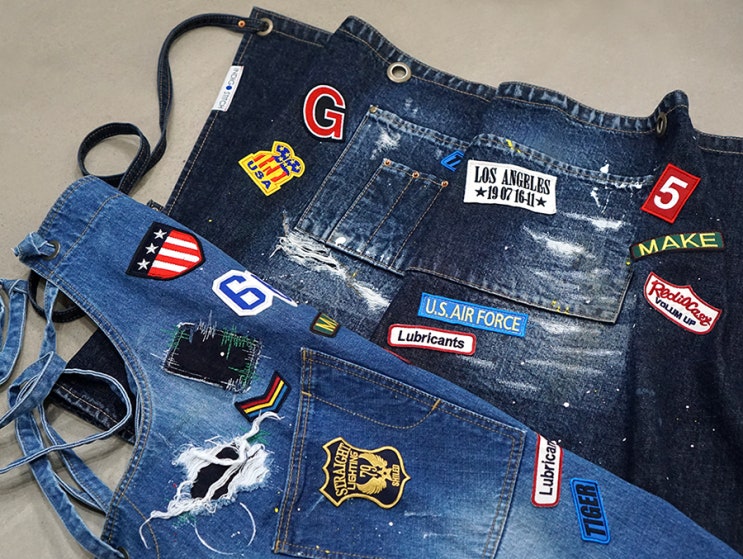 [하프앞치마] 빈티지 와펜 디테일 데님 하프 에이프런