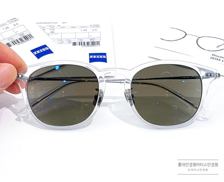홍대 자이스 누진다초점 변색렌즈와 블루라이트 차단렌즈를함께 : 하얀색 뿔테안경 홍대 아티스 안경원