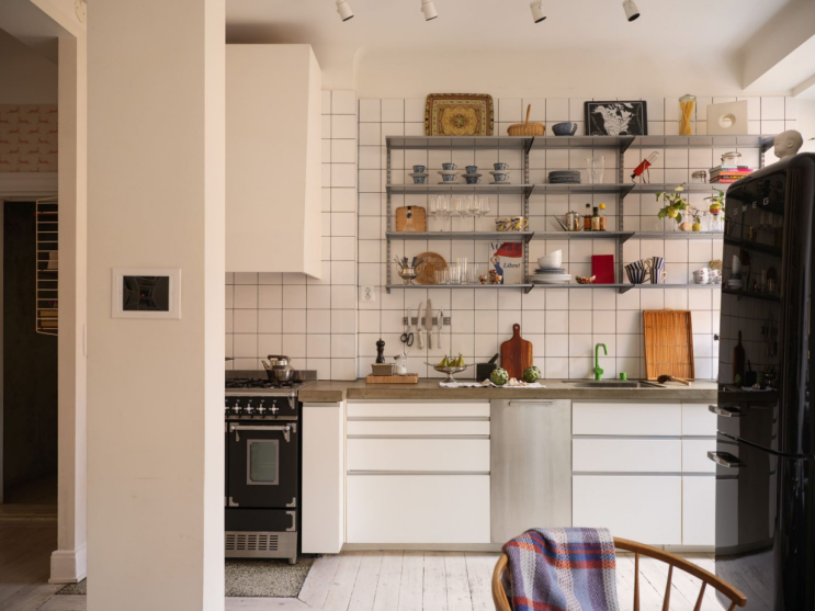 오픈선반으로 편리하게 벽선반인테리어 1911년 스웨덴 스톡홀름에 지어진 아르누보 양식의 최상층에 위치한...