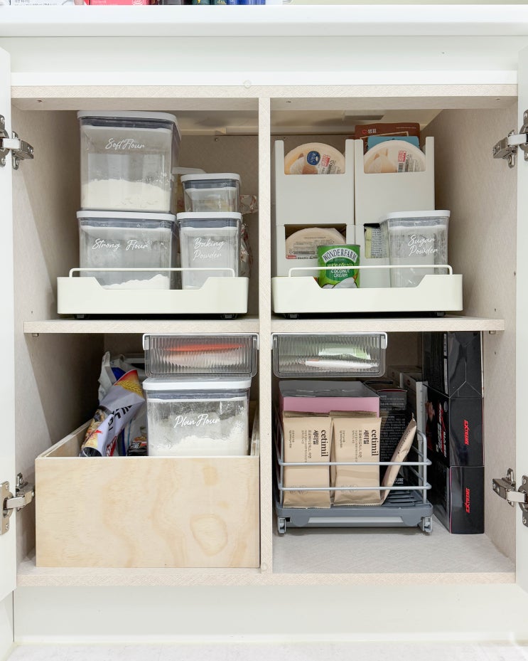 슬라이딩 선반으로 주방수납장 정리 깔꼼