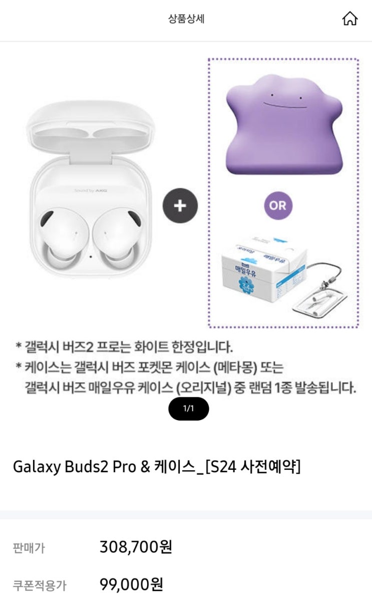 삼성 갤럭시 S24 시리즈 사전 구매 혜택 <갤럭시 버즈2 프로 & 케이스(메타몽 | 매일우유) 99,000원 구매 쿠폰> 이용 방법