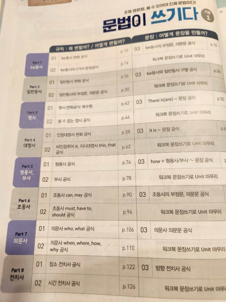 예전에 풀었던 교재 2번째 푼다. 중등 영문법으로 가기 전에 다시 초등 영문법 정리 하루에 파트1개씩 8일 ...
