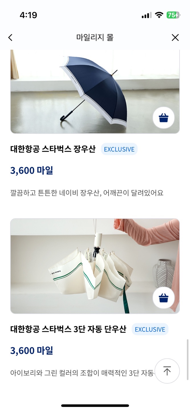 대한항공 마일리지 사용하기 2편 [스타벅스 3단 자동우산]