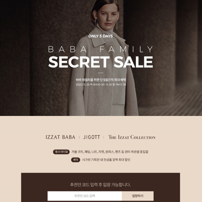 바바더닷컴 시크릿 세일 할인코드로 아이잗바바 코트 할인!
