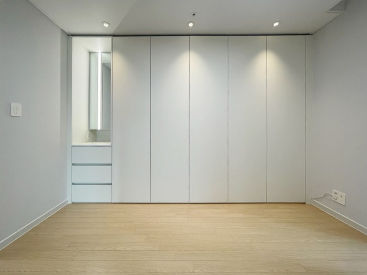 안방 가구 화장대 일체형 붙박이장 라인등을 활용한 세련된 화장대 : 드레스룸인테리어 스타일러장 : 부천 20평대인테리어