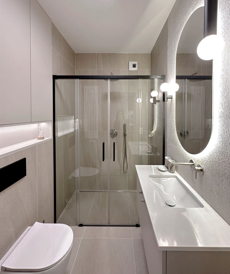 욕실 리모델링 건식욕실 고급스러운 인테리어 : 서초구 인테리어 : 20평대 아파트 꾸미기