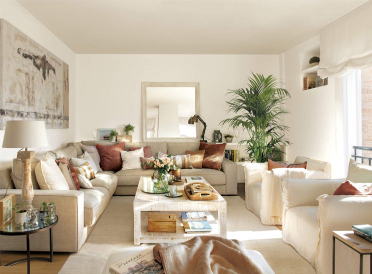 작은 카페 장식 행잉 식물 라탄 조명 인테리어