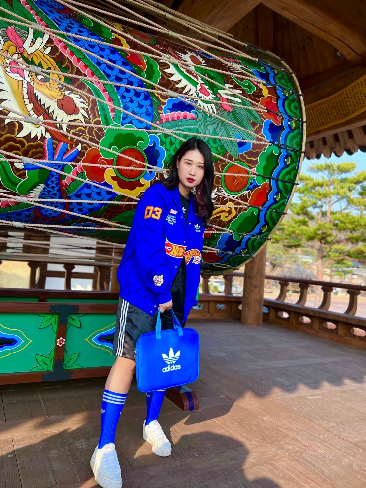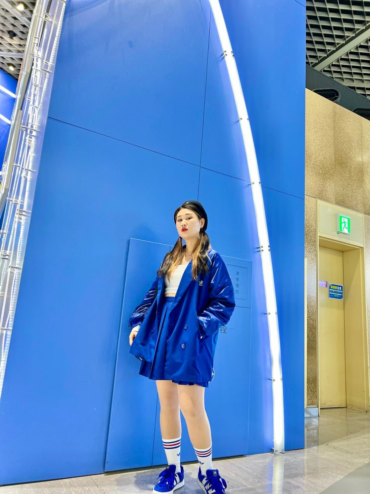 [맛소금의 이중생활] 72. 봄 도쿄 여행 4탄✈️ 공항에서 푸른 하늘 색감의 아디다스 룩 입어볼까?#아디다스블레이저자켓#아디다스플리츠스커트치마#아디다스크롭티#아디매틱#캉골베레모
