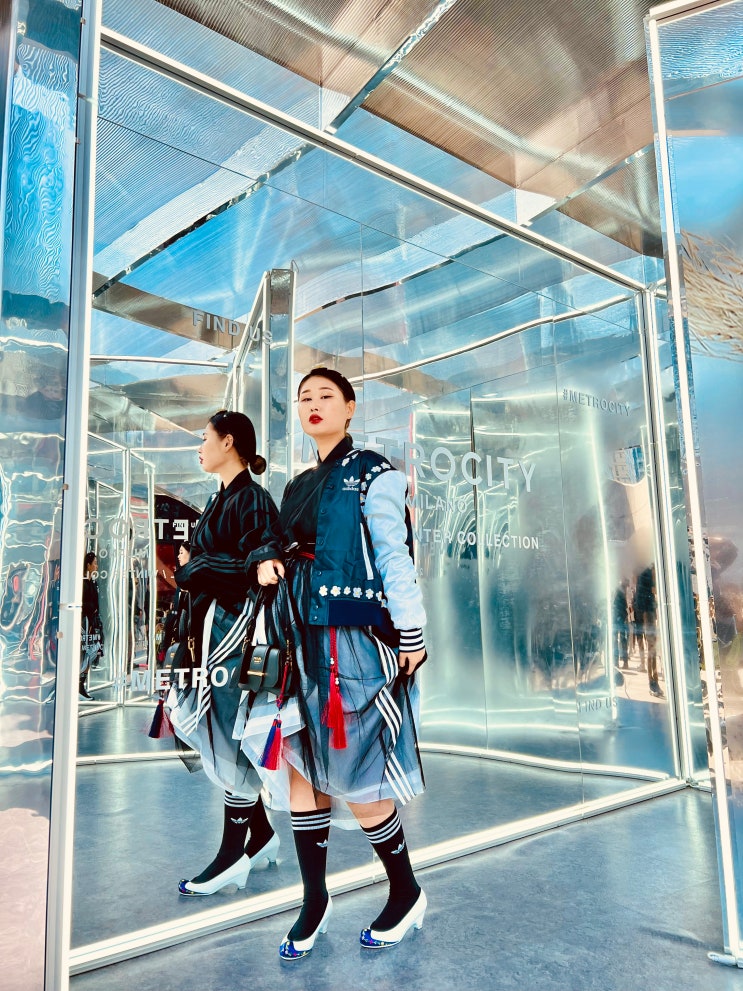 [맛소금의 이중생활] 68. 23FW서울패션위크, 전통 美 가득 힙한 아디다스 룩 입어볼까?#아디다스스카잔바시티자켓#아디다스튤스커트#프라다시도니백#TM두루마기#한복꽃신#백의허리치마