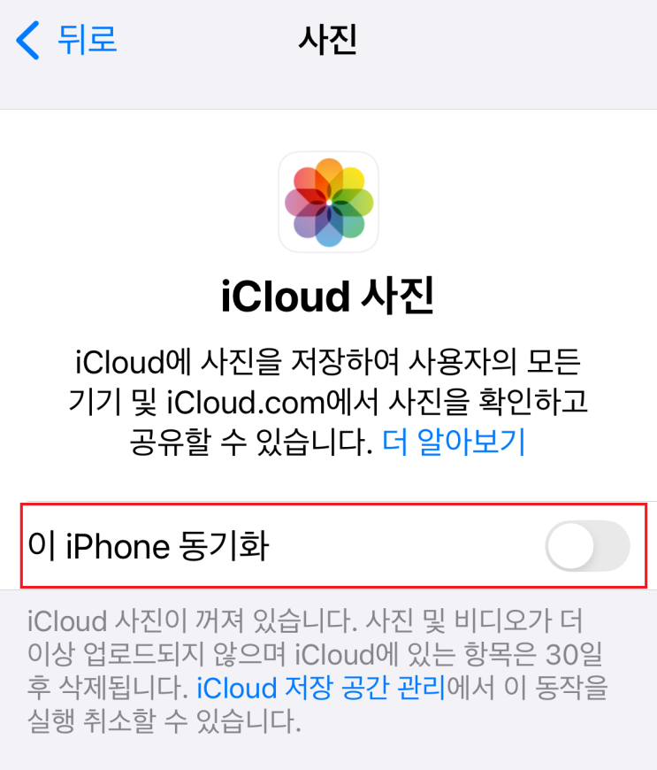 애플 아이폰 아이클라우드 iCloud 사진 동영상 동기화 설정 끄는 법