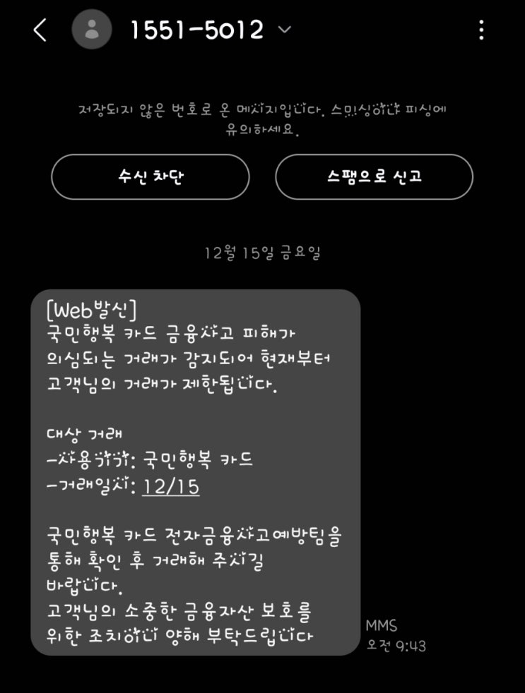 국민행복 카드 금융사고 피해/1551-5012 보이스피싱?