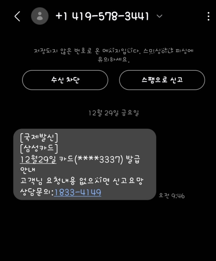 419-578-3441/ 1833-4149 국제발신 삼성카드 발급 안내