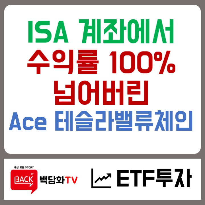 중개형 ISA 계좌 관리 ACE 테슬라밸류체인액티브 ETF, 100% 수익 ©빽담화TV 안녕하세요. 자산관...
