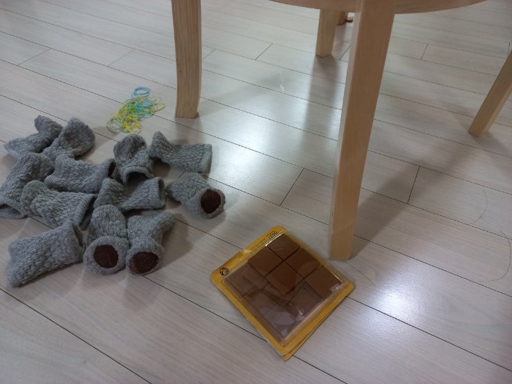 다이소에서 샀던 천으로 된 의자 발커버가 자꾸만 빠져서 고무줄로 꽁꽁 동여맸었는데 이것도 빠져서 노브...