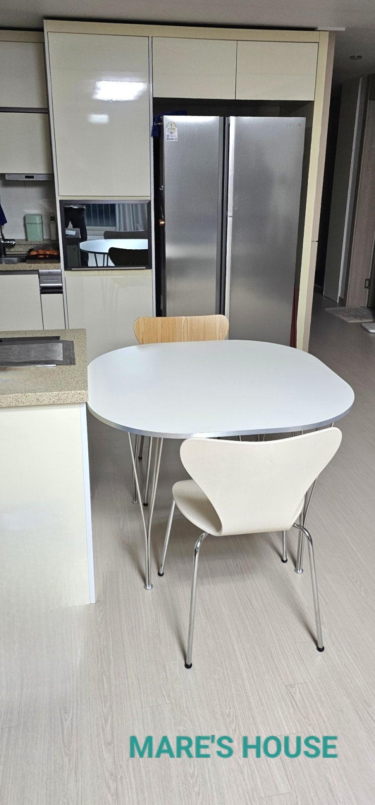 둥근스퀘어테이블 원형식탁 원형테이블 화이트식탁 4인용식탁 라미네이트식탁 미드센츄리식탁 마레의집