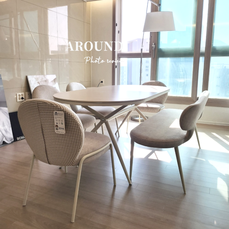 대구신혼가구 베이지색 타원형 세라믹식탁세트로 화사하게