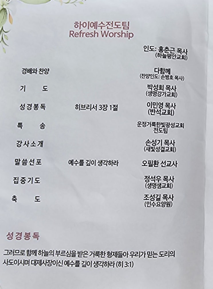 하나님과 이웃을 사랑하는 전도모임 하이예수전도팀 목사님들의 전도모임을 제가 섬기는 일산 새빛교회에서...