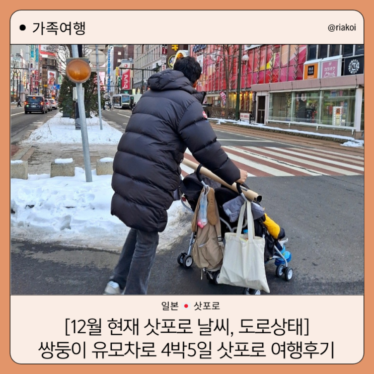 12월 삿포로 현재 날씨, 오도리 스스키노 거리 도로 상태, 기내 반입 안되는 쌍둥이 유모차로 여행하기