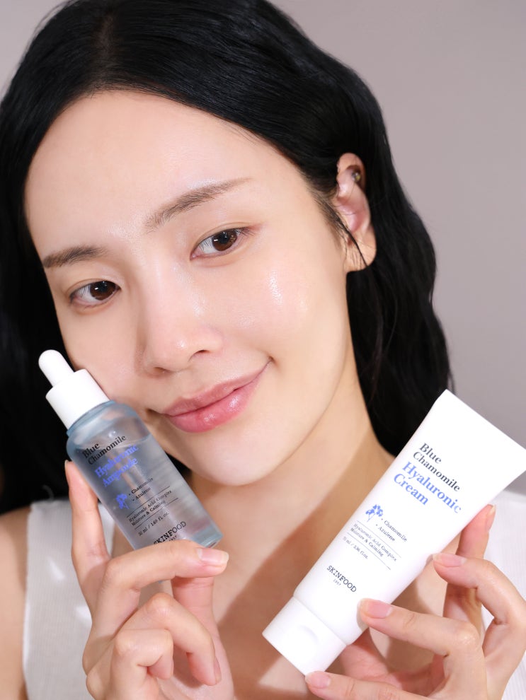 스킨푸드 블루 캐모마일 히알루로닉 앰플 & 크림으로 수분 더해 화잘먹피부만들기