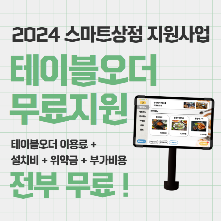 [대전소상공인지원] 2024 스마트상점 지원사업으로 테이블오더 설치 및 이용료가 무료! 바로 신청하세요?