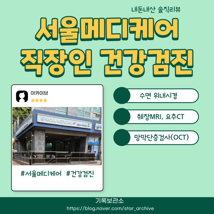 서울메디케어 건강검진 내돈내산 솔직리뷰 (feat. 수면 위내시경, 췌장MRI, 망막단층검사(OCT), 골밀도검사, 요추CT)