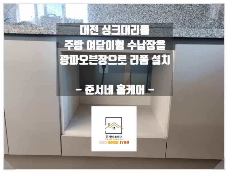 대전 싱크대리폼 주방 여닫이형 수납장을 광파오븐장으로 리폼 설치