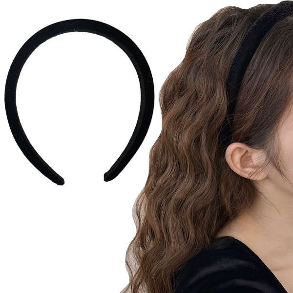 연말 파티룩 헤어소품 추천 벨벳 공단 2cm폭 블랙 헤어밴드 겨울머리띠