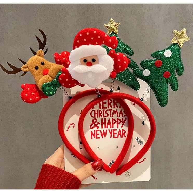 크리스마스 코스튬 헤어밴드 산타 루돌프 사슴뿔 트리 리본 연말 파티 이벤트 선물 머리띠