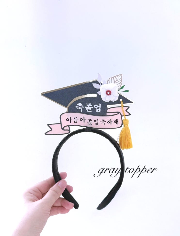 졸업 축하 토퍼 졸업 학사모 머리띠 졸업토퍼제작 응원머리띠 선물 [ 그레이토퍼]